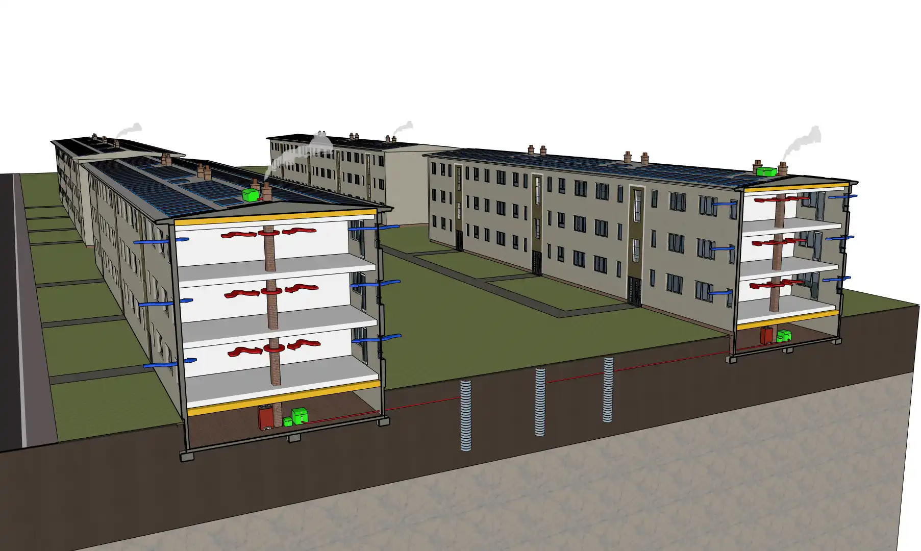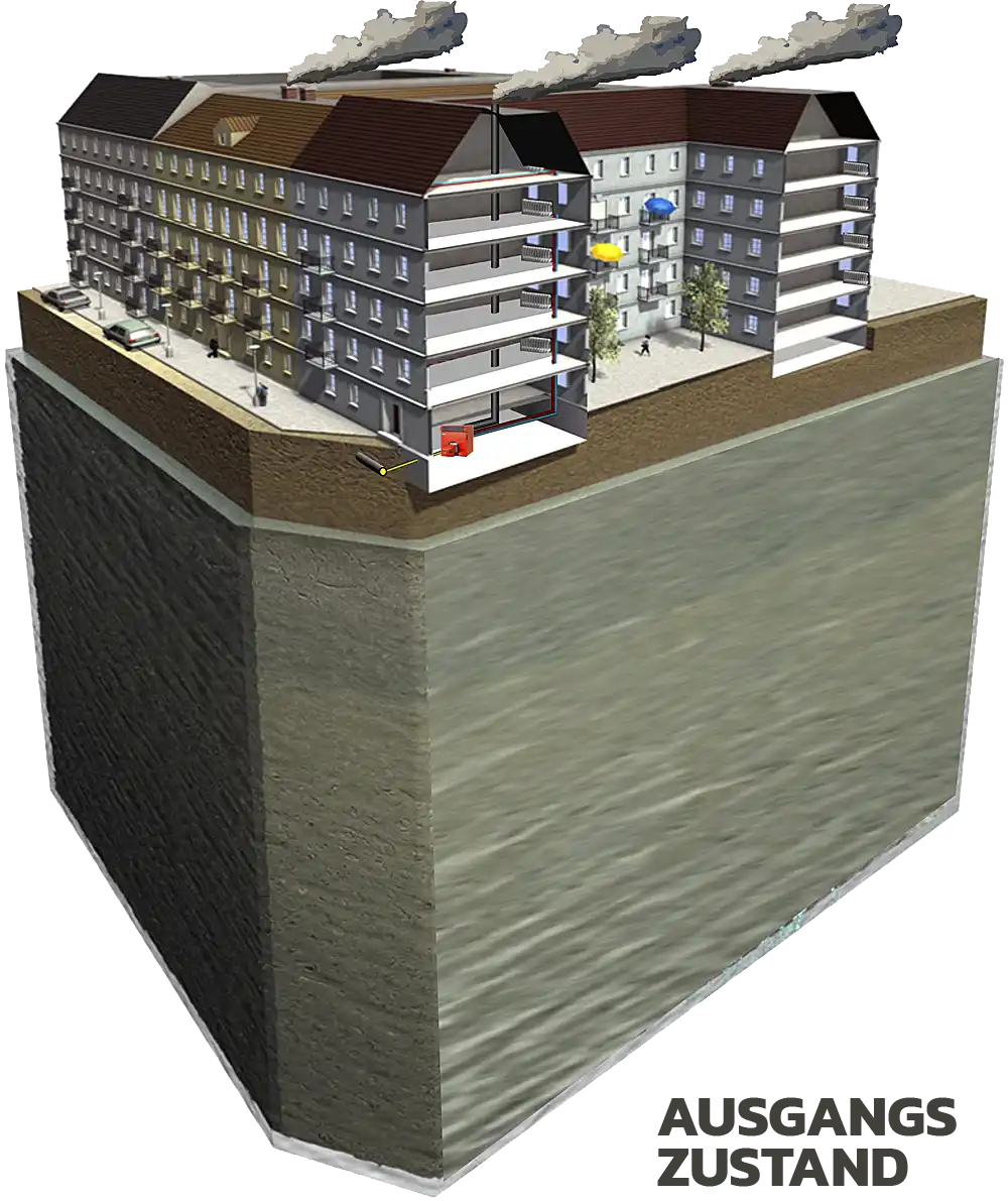 Aquiferspeicher und zellulare Quartiersentwicklung mit einem Kaltnetz im Bestand | |